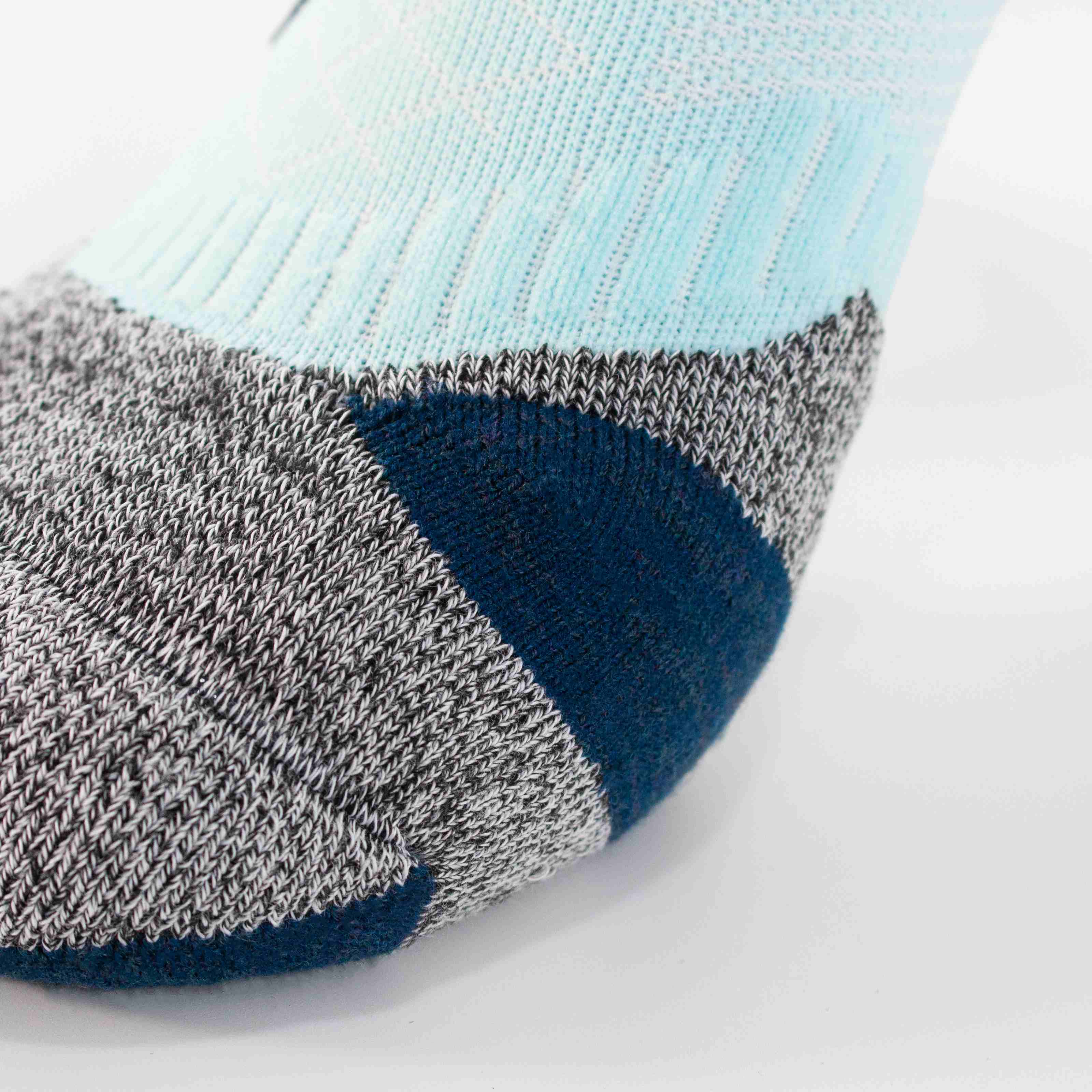 Denser, thicker wool layers embedded at key stress points like toe bottoms and Achilles tendons naturally absorb moisture and cushion impact, preventing blisters during high-intensity exercise.